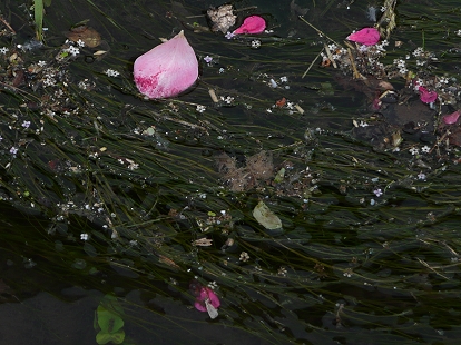 Was ist das nur, woher kommen all die zarten Rosenblätter?, dachte sie die Augen ständig auf das Wasser geheftet. Bis sie auf einmal vor einem mächtigen über und über mit rosafarbenen Blüten bedeckten Rosenstrauch stand, der so betörend duftete, daß ihr das Herz vor Sehnsucht sprang.