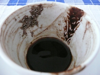 In der Türkei haben wir zum Spaß manchmal im Kaffeesatz gelesen. Oder es versucht. Der Professor zeigte uns, daß man dazu die kleine filigrane Porzellantasse mit dem Satz des türkischen Kaffees darin mit einem Zug umdrehen und auf den Unterteller stellen müsse. Etwas warten und hochheben. Man kann dann auch noch den Unterteller senkrecht halten und sehen, was für ein Bild der herabrinnende Kaffeesatz einem zeigen würde.