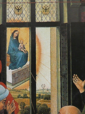 Eine rote Rose und ein Asparagus-Zweig schwebte von der Decke herab. Frauenhaar. Beide schwebten mitten im Zimmer, um dann schwebend durch das Fenster nach draußen zu entschwinden.