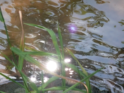 Am Bach spielt das Licht mit dem Wasser und dem Schilf.