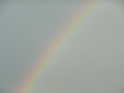Ein Gewitter am Abend. Im Osten regnete es und im Westen schien die Sonne. Dann, nach einer Weile, ein Regenbogen im Osten. Ein riesiges Tor.