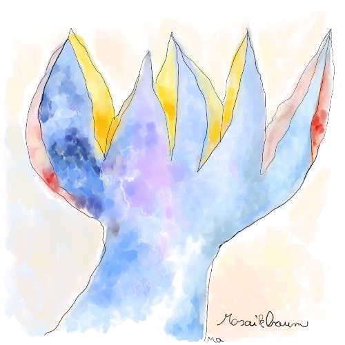 In letzter Zeit kommt er häufig in meinen Träumen vor. Vor einigen Wochen träumte ich, daß ich hinter einer Schulbank saß, neben anderen, und er stand als Lehrer vor uns. Wir saßen ganz vorne, in der ersten Reihe. Er machte eine Bemerkung, was über mir ist, nämlich viele Regenbogen. Regenbogen, die gleich des Wassers eines Springbrunnens hervor sprudeln würden. Ich sagte, ich weiß es nicht. Er legte seinen Kopf schräg, kniff seine Augen zusammen und sah mich an. Tatsächlich war es so und ich war stolz. Dann fragte er, ob ich die Stimme von Rosa in mir höre. Ich erhob mich, wandte mich mit der Konzentration nach innen, sank tief in mich. Da ich intensiv spürte, wie ich tiefer und tiefer sank, meine ganze Aufmerksamkeit vom Außen nach innen weggezogen wurde, wußte ich, daß es klappen wird. Leise, sagte ich. Und da war die Stimme von Rosa in mir, ich konnte sie hören, sie sang ein Lied. Gleichzeitig teilte ich das Empfangene laut meinem Lehrer mit. Doch durch das Sprechen war ich aber nicht mehr fähig dem stetigen und unaufhörlichen Gesang in mir zu folgen, so daß ich den Faden verlor, da ich mich durch das Sprechen nicht mehr auf das Hören konzentrieren konnte und auch weil ich nicht so schnell reden konnte wie die Stimme sang. Ich hörte nur noch meine Stimme mit meinen äußeren Ohren.