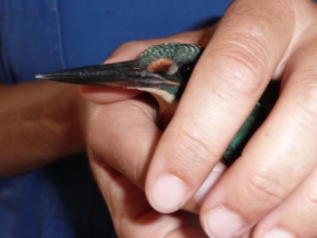 “Komm einmal, schnell”, hat mein Vater zu mir gesagt. Ich saß gerade am Schreibtisch im Büro und war mit Konten beschäftigt. Folgte ihm. Folgte ihm über dem Hof zum Ausstellungsraum. Und da sah ich, was er meinte, warum ich schnell kommen sollte, es war nicht wegen eines Autos, sondern da saß ein kleiner Eisvogel auf dem Gehsteig, der offensichtlich im Pfeilflug stockvoll gegen das Fenster geprallt war. Er bewegte seinen Kopf seltsam ruckartig und war sichtlich benommen. Das war so ein schlimmer Anblick. Schnell ging ich hin, nahm ihn in meine Hände und hob ihn auf. Ich habe ihm dann einen dunklen, katzensicheren Platz auf der Dachterrasse eingerichtet. Es sieht nicht gut aus. Das größte Problem neben der Verletzung - er kann auch nicht mehr fliegen - ist das Füttern.
