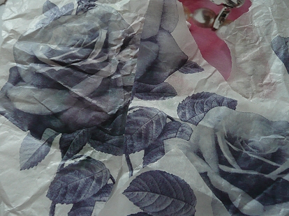 Ein Diamantherz. Und die blauen Rosen blühen auf dem Papier.