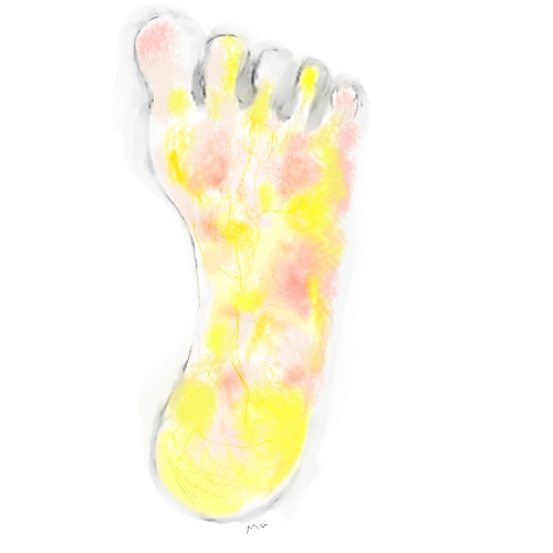 Ich habe von einem rechten Fuß geträumt. Aus dem Bereich der großen Zehe ganz vorne entwickelten sich schön geschwungene Linien, ein wundervolles Muster begann nach und nach über den ganzen Fuß zu wachsen. Der Fuß hieß: Poesie.
