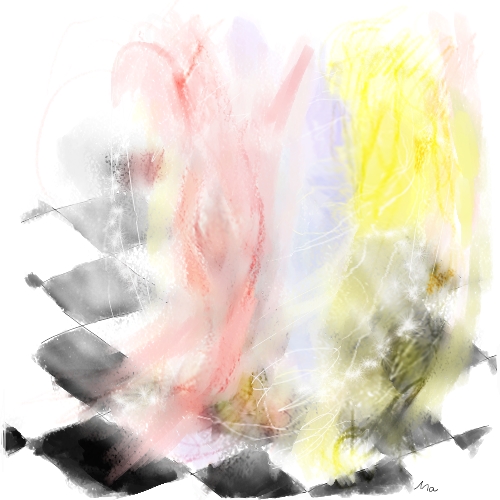 Ich träumte, daß ich durch ein kleines Büchlein mit schönen, pastellfarbenen Aquarellen und Texten blätterte. Eines dieser Aquarelle zeigte einen schachbrettartigen weißschwarzen Boden, der von etwas Hellem, von etwas Pastellfarbenem, schon fast verschwunden war. Das schöne Pastellfarbene hat den schwarzweißen Boden schon fast ganz ausgeblichen, ausgeblichen und aufgelöst und bald wird er ganz verschwunden sein!