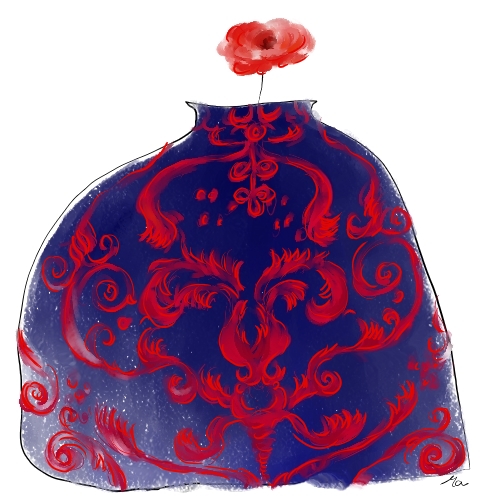 Ein Traum, wieder von Kleidern. Ich wache in meinem Bett im Schlafzimmer auf. Das Zimmer ist leicht abgedunkelt. Es ist früher Morgen. Ich will in die Schule gehen und ziehe mich eilig dafür an. Den sommerlichen Baumwollrock, der mir gerade bis zu den Knien reicht und leicht ausgestellt ist. Er ist blau und mit einem roten, ornamentalen und volkstümlich anmutenden Muster bedruckt. Dazu ein enganliegendes Stricktop mit Spaghettiträgern. Es ist aus einem leicht schimmernden, beigegoldenem Faden. Eine passende, hüfthohe Unterhose aus weißer Spitze. Und silberne Schläppchen mit je einer kleinen Schleife. So, nun fühle ich mich wohl und angezogen. Sehe mein Bild im Spiegel des Korridors, meinen Oberkörper. Meine Haut ist weiß und hat einen seidigen, warmgoldenen Schimmer. Aber in der Mitte, genau in der Mitte des tiefen Ausschnittes, auf dem Brustbein, da ist auf einmal ein sehr großes und schokoladenbraunes Muttermal in Form eines aufsteigenden Vogels, das vorher nicht da war! Es ist nicht genau in der Mitte, sondern vielleicht einen Zentimeter rechts davon.