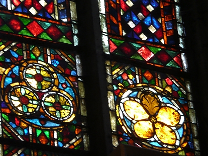 Für einen Moment glühte die Sonne goldgelb durch die gelbe Blumenrosette des bunten Glasfensters, so daß sie aussah wie ein leuchtender Schmetterling. Ein gelber Schmetterling genau über dem verschlungenen Rankenwerk der dritten Schauseite des Altars. Für uns.