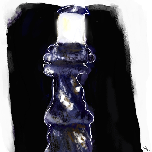 Eine Art Drache schwebte plötzlich im Zimmer, als ich die Augen öffnete. Eine Raute aus kleinen weißen Bröckelchen, daran eine lange Schnur. Er flog zu mir her, tat einen regelrechten Satz und ich erschrak sehr. Dann flog er aus dem Fenster, besser gesagt aus dem Glasschrank, der auf einmal das Fenster nach draußen war, denn alles war umgekehrt.