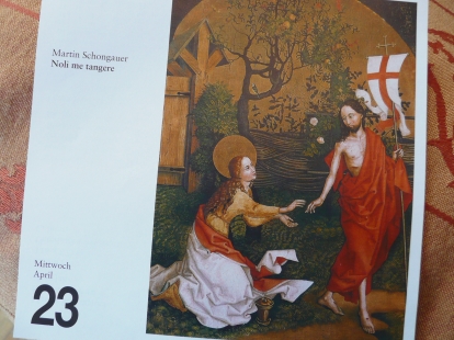 Es ist - mir fehlen die Worte das zu beschreiben, was ich empfand, als ich in die Kirche des Klosters trat. Man geht durch die hohen und kargen Räume, in welchen bereits kunstvoll bemalte und leuchtende Glasfenster und Gemälde ausgestellt sind, steinerne Skulpturen und Schnitzwerke, schreitet durch den Kreuzgang - er war sonnendurchflutet -, um schließlich eine schwere Holztüre zu öffnen, sich nach links zu wenden - wieder eine Türe, ein schmaler Durchgang mit den sich reichenden Händen - und tritt in die alte Klosterkirche ein, in welcher erst auf Bildtafeln rechts und links senkrecht zu den Wänden stehend im bis auf diese Bildtafeln und dem Altar vollkommen leeren Kirchenschiff u. a. geistliche Gemälde von Martin Schongauer plaziert sind. Je vier Bilder waren zu einer großen Tafel zusammengefügt und durch einen kreuzförmigen Holzrahmen verbunden. In der Mitte des Schiffes, dann, noch ein Stück weiter vorne, noch ein paar Stufen hinunter, im Zentrum der Aufmerksamkeit, der Kirche: der Altar, die erste Schauseite.)