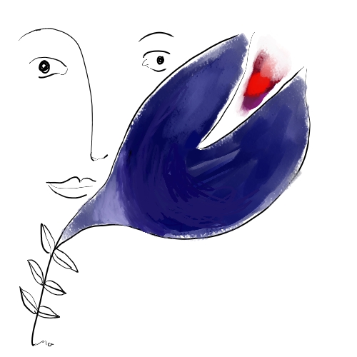 Ich habe etwas aus dem Goldpapier ausgeschnitten, einen großen Vogel. Einen stolzen Vogel. Einen Vogel, der mit seinen Flügeln schlägt und seine Schwanzfedern gespreizt hält. Er ist wunderschön.