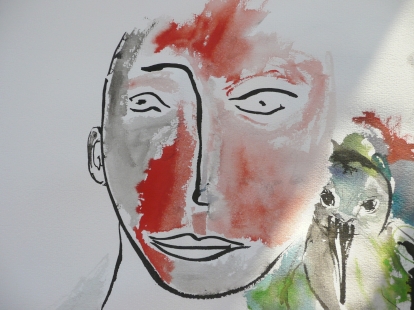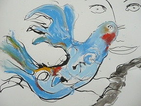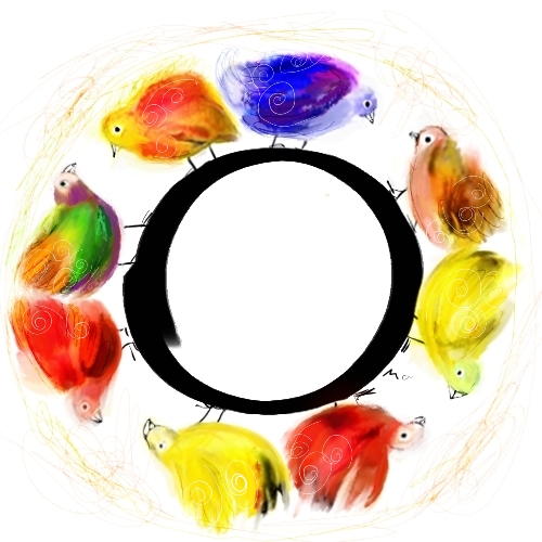 Eigentlich ist der Zen-Kreis, das Ei, auf dem die Vögel sitzen, eine Sonne. Die Sonne. Und ich glaube, ich hätte vielleicht nicht acht sondern zwölf Vögel malen sollen.