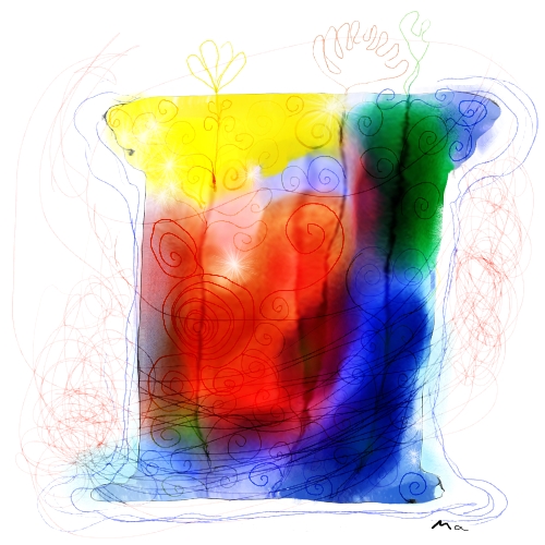 Und noch ein Traumbild, in welchem ich ein neues Buch aufschlug, in dem viele wunderschöne bunte Zeichnungen abgebildet waren, zum Beispiel ein blauer Tropfen, eine Blume, oder diese bunte Säule.