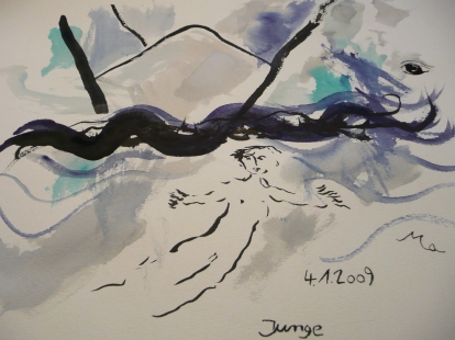 Ich träumte vom Waldsee. Der Waldsee im Winter. Ich ging dorthin. Jemand legte sich in voller Montur in das eiskalte Bächlein hinein, das in dem Traumbild aus dem vorderen, linken Eck des Sees entsprang. Genau aus dem Eck entsprang dieses Bächlein. Ringsherum Eis und Schnee. Es schien mir unglaublich, ja unmöglich, daß sich jemand da der Länge nach einfach hineinlegt und so lange Zeit regungslos verharren kann, als wäre das nichts. In dieses eiskalte Wasser bei diesem eisigen Wetter. Ohne im mindesten das Gesicht zu verziehen.