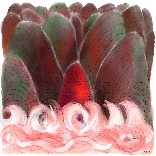 So stelle ich mir die Rinde eines etwa tausendjährigen Maulbeerbaumes vor. In meiner Vorstellung hat ein etwa tausendjähriger Maulbeerbaum so eine Rinde. Obwohl ich gar nicht weiß, welche Rinde ein Maulbeerbaum wirklich besitzt. Vielleicht ist sie ja eigentlich vollkommen glatt.