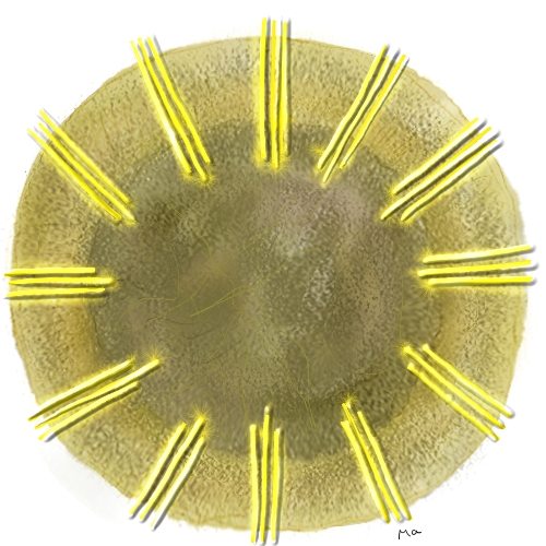 Etwas wie ein runder Stein, ein Felsenrad, in das von allen Seiten Strahlen aus Gold hereinbrachen.