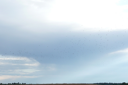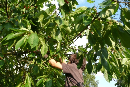Ein riesiger Vogelschwarm, es waren Staren, kreiste über den Weiler, in dem ich zwei Steige Kirschen abholte.