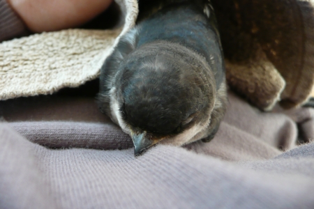 Kleine Schwalbe an meinen Bauch gekuschelt