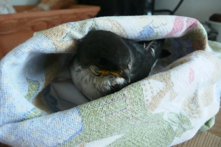 Die kleine Schwalbe war währenddessen bei meiner Mutter. “Ein kleiner Käfer ist ihr in den offenen Schnabel geflogen”, sagte sie, als ich sie abholen kam. Einer dieser kleinen, schwarzen Käfer, welche in den Blüten von Sonnenblumen leben.