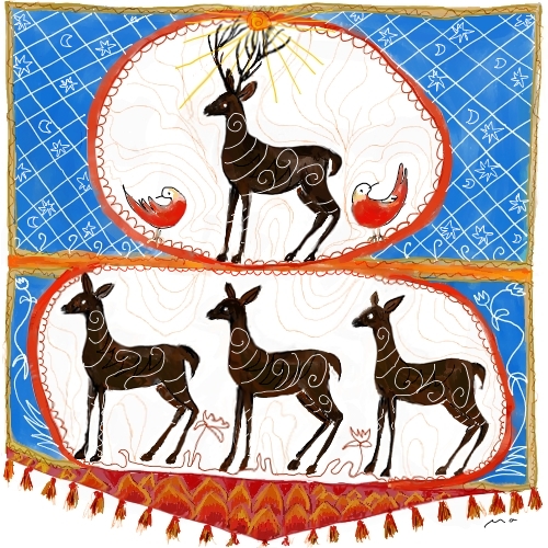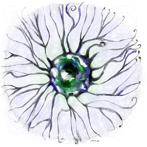 Erst verstand ich das Bild nicht. Doch dann kam ich darauf. Es bezieht sich wohl auf eine mittelalterliche Zeichnung, die wir bei dem Seminar angeschaut haben. Sie zeigt in sieben Sequenzen einen Baum, eine Baumfrau, die sich von der Erde, von den Gesetzen der Natur, löst.