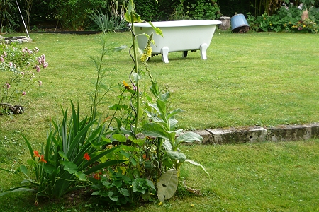 Aus dem großen Steinquader ist wider allen Erwartens frisches Grün getrieben. Hauchfein und zart. Gras. Und Dill, der bereits blüht.