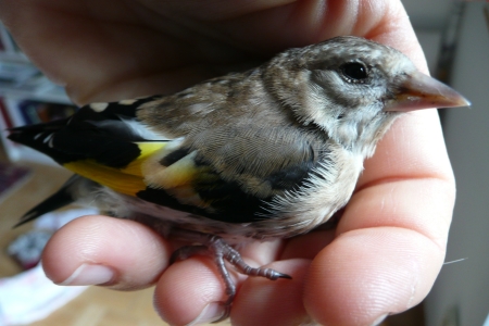 Was für eine Erleichterung! Und was für ein Wunder! So ein kleines Federknäuel. So wie es aussieht, werde ich den kleinen Stieglitz morgen fliegen lassen können.