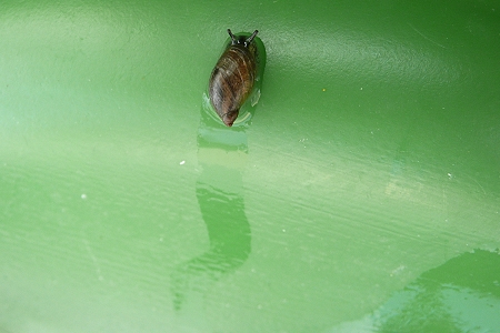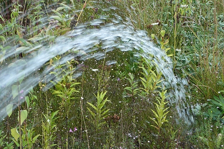 Eine kleine Schnecke auf der Gießkanne. Molandana. Und sprudelndes Wasser: