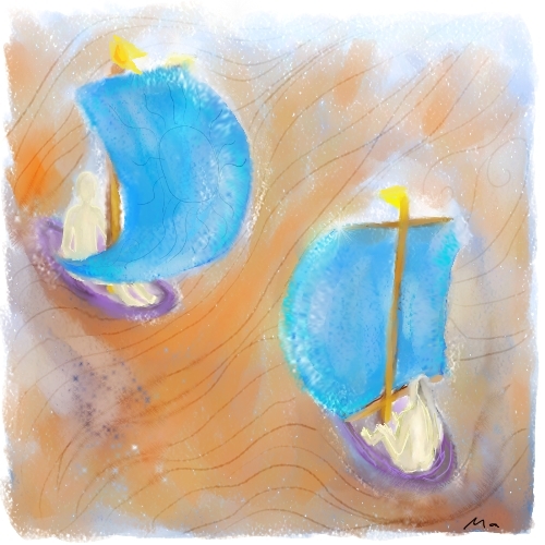 Zwei, die aufeinander zu segeln. Ein Traumbild.