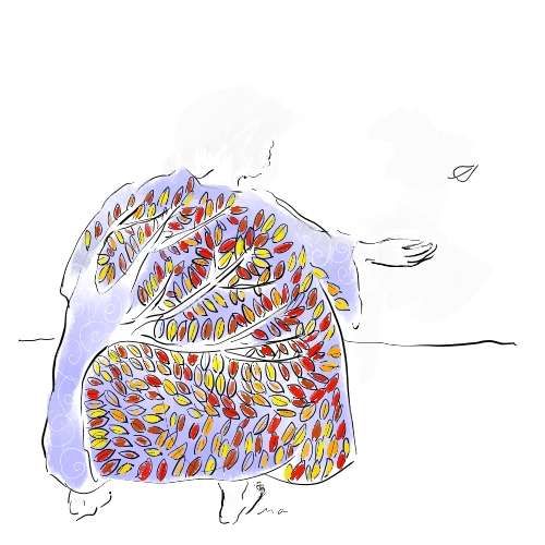 Wind wehte. War sie selbst der Baum? Sie trug ein besonderes Kleid, das sie einhüllte. Der Baum war sie. (Für M.)