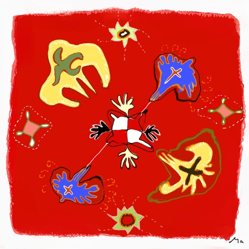 Ein Traum ging so: Alle schrieben ihren Namen in eine Liste und kreuzten an, was sie geträumt hatten. Es ging darum, ob sie an Gnade glauben oder ob sie von Gnade geträumt haben. Sie unterschrieben für Gnade. So in der Art. Sogar Frau D, eine Freundin meiner Mutter, hat sich eingetragen. Das Blatt Papier war in Zeilen unterteilt und hinter jeder Zeile war ein Symbol. Ein quadratisches schwarzes Feld, in dem wie zwei geschwungene Hände, welche einen Keim, einen Samen, schützend umfaßten, diagonal von links unten nach rechts oben aufsteigend, dargestellt war. Oder wie eine Knospe von zwei Blütenblättern umhüllt. Und dieses Zeichen bedeutete Gnade. Es hat mich auch etwas an eine Sonnenfinsternis erinnert. Eine liegende Gnade. Aber das Schlimme war, das ich als einzige von allen hineinschreiben werde: ohne Gnade. Das war sehr schlimm.