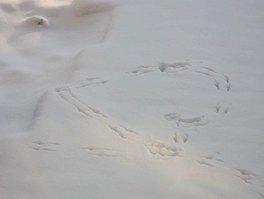 Bei Günter hat ein kleiner Vogel ein Herz in den Schnee getapst! Es ist unglaublich. Er sandte mir ein Foto. Tatsächlich. Ob es wohl an den vielen Sonnenblumenkernen lag, die er in seinen Garten geworfen hat?, schrieb er.