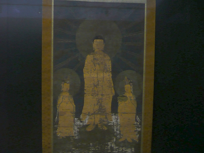 Die Herabkunft des Amida mit Seishi und Kannon Bosatsu. Wandteppich aus Japan,