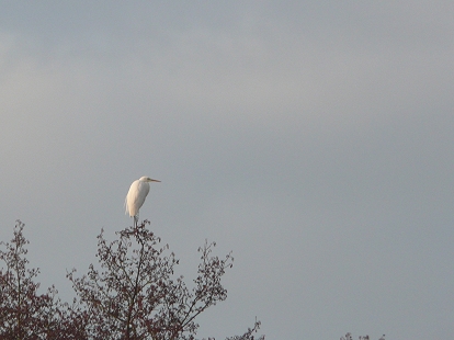Heute habe ich den weißen Vogel wiedergesehen. Er saß auf dem höchsten Zweig einer der Erlen entlang des Baches, der mitten durch das Tal fließt.
