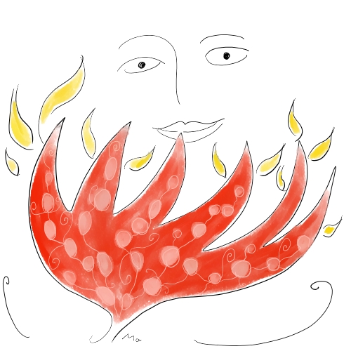 Bei dem Element Luft angekommen sah ich mich aus irgendeinem Grund nicht von einem sanften Wind umweht auf einer hohen Klippe stehen, denn so ging eigentlich die Meditation, sondern im weiteren Verlauf von der hohen Klippe aus auf unsichtbaren Treppenstufen immer weiter in die hellblaue Luft hinaufsteigen. Wie in den wunderbaren Zeilen eines Gedichtes von Hilde Domin: Ich setzte meinen Fuß in die Luft und sie trug.