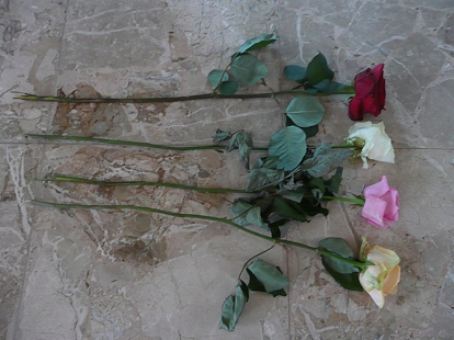 Wir haben Rosenblätter auf einem Platz gefunden. Ich rief erstaunt: “Schau, da liegen ja Rosenblütenblätter auf dem Asphalt!” Sie waren sehr groß. Rosa. Rot. Sie sahen aus wie aus dem Bilderbuch. Wie gemalt sahen sie aus. Wie von einem englischen Maler für ein romantisches Bild erdacht. Ich bückte mich und sammelte sie händeweise im Neonlicht der Straßenlampen ein. Füllte meine Handtasche damit.