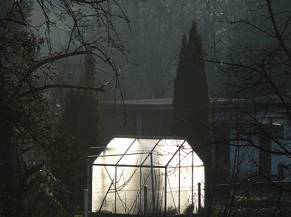 Ein stiller Sonntag. Der Himmel bedeckt. Ganz weiß. Es ist mild. Arbeit im Garten. Malen. Lesen.