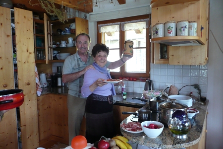 Abends kochten wir bei meiner Schwester. Das Baumhaus wird jetzt abgerissen, da es morsch ist. Es gab warmen Rabarberkuchen. Und Süßigkeiten aus Italien. Für jeden ein Baci. Auf meinem stand: Le coeur a ses raisons que la raison ne connait pas. Von Blaise Pascal.