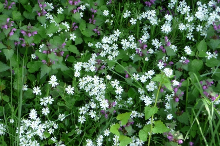 Heuer blühten die Maiglöcken, die ich schon vor einigen Jahren in eines der drei Beete gepflanzt habe, das erste Mal. Sie wachsen gleich neben dem Waldmeister. Im Schatten der dritten Robinie.