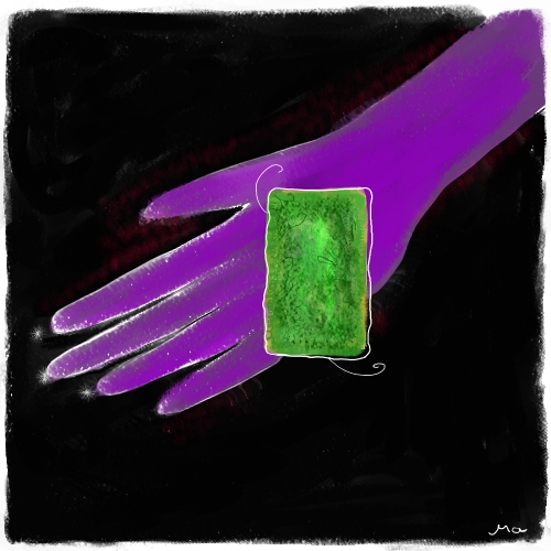 Das Bild bedeutet: Grüner Raum, der gegeben wird. Von der purpurnen Hand.