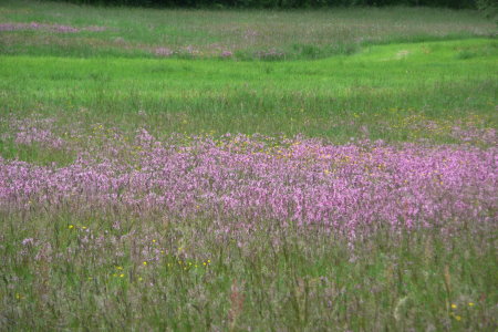 Und im Wind tanzt der weiße Flaum der Zitterpappeln, die am Bach wachsen. Sanft schaukelnd. Blick hinab.