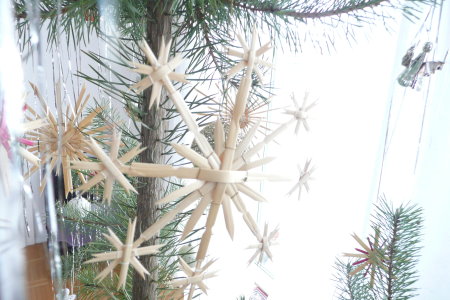 Sie hat mir all die wunderschönen Strohsterne geschenkt, die sie einmal an Abenden in der Adventszeit vor fast vierzig Jahren sorgfältig gebastelt hat. Nun schmücken sie den Tannenbaum.