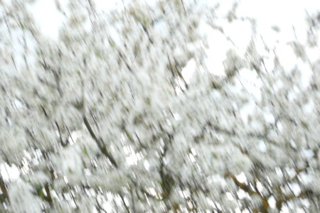 Da war ein Obstbaum, der abgesägt worden war und sich nur noch mit Hilfe seiner Krone an den Kronen zweier anderer Obstbäume hielt. Er stand im frischen Grün und blühte gerade üppig, obwohl er doch abgesägt worden war. Das Unterteil, das untere Stück seines Stammes, fehlte ganz und gar. Und trotzdem blühte er. Auch die beiden anderen Obstbäume standen in voller Blüte.