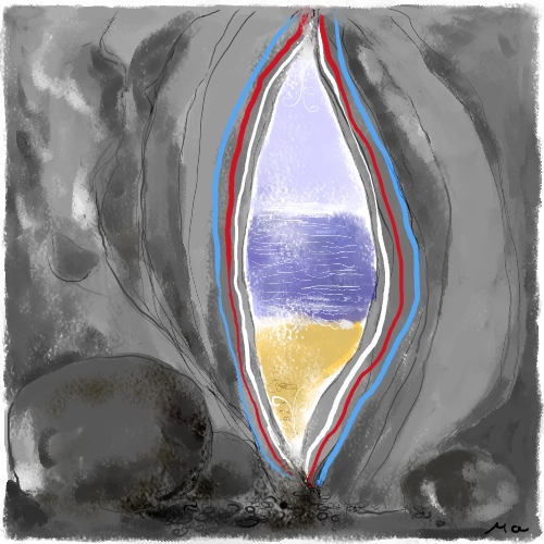 Da ist ein schmaler Schlitz aus der grauen Höhle hinaus ins Freie. Das Meer. Du mußt dich nur weg von der grauen Wand drehen und hindurchgehen!