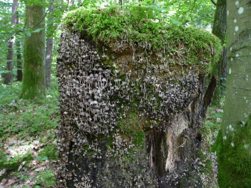 So standen wir eine Ewigkeit, während die von Ferne erst leisen dann immer lauter werdenden Geräusche der ab und zu vorbeibrausenden Autos den Vogel jedesmal zusammenzucken ließen. Ging ein paar Schritte tiefer in den Wald und drehte mich von der Straße weg. Da war ein großes, grünes Gittertor mit Eisenzacken am oberen Rand. Dahinter schien aber nichts weiter zu sein außer Dickicht. Man konnte auch links und rechts des Tores vorbeigehen, es gab keinen Zaun. Links im Gebüsch machte ich einen hohen Baumstumpf aus.