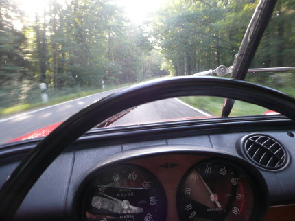 Das Meer fängt gleich hinter Nürnberg an. Das kleine rote Auto auf großer Fahrt.