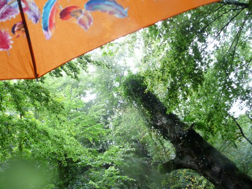 Das satte matte Dunkelgrün des Waldes, welcher das Tal im Süden und im Norden in langen Wellen begrenzt, scheint manchmal flackernd purpurot, durchwoben von giftigem Ockergelb. Schmetterlinge gleiten federleicht durch die durch das Blätterhaus hereinbrechenden Strahlenkegel. Veränderliche Öffnungen. Welche Scheinwefern gleich jubelnd jedes Detail des Boden des Waldes unendlich verführerisch ausleuchten. Den Farn. Welkendes Laub. Gleißend helle Spiegelungen blenden von flachen, kochend heißen Dächern von weit her. Ortschaften liegen wie ausgestorben. Leere Straßen, auf einmal scheinen sie breiter. Eine Wehmut über allem. Denn der Herbst naht. Greifbar schon, hinter dem stillen und endlosen Atem der Äcker. Aber auch Zärltichkeit. Aber auch Freude.