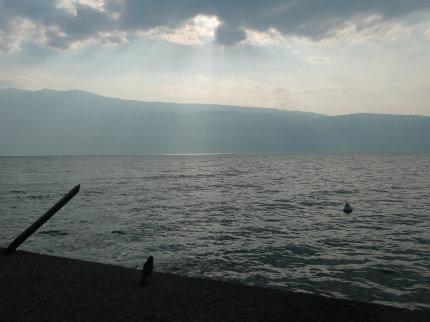 Jeden Tag, zur Zeit des Abendessens, begannen sich erst die Berge des gegenüberliegenden Ufers ganz langsam blau zu verfärben, sie nahmen die Farbe des Sees an. Der an manchen Abenden glatt wie ein Speigel war. So unschuldlig. Und plötzlich, in der Nacht, verwandelte er sich wieder in ein tosendes und Gischt spritzendes Meer.