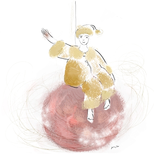 Nun tat sie aber etwas ganz Erstaunliches! Sie hat ein besonderes Kunststück vollbracht. Sie drehte nämlich inmitten der ganzen Vogelschar lustige Pirouetten im Kopfstand auf dem Asphalt - auf ihrer entzückenden kleinen Nase!