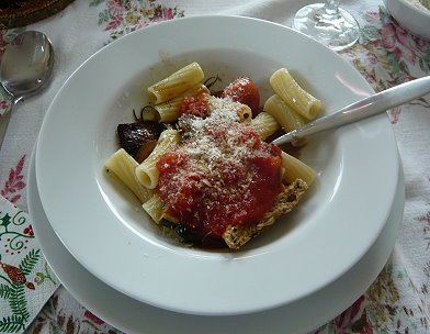 Weihnachtsmittagessen: Pasta mit Schnee-Parmesan. Damit es wenigstens ein bißchen weiß ist.