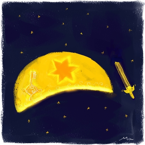 Himmelsbild mit Mond, Stern, Schlüssel und Schwert